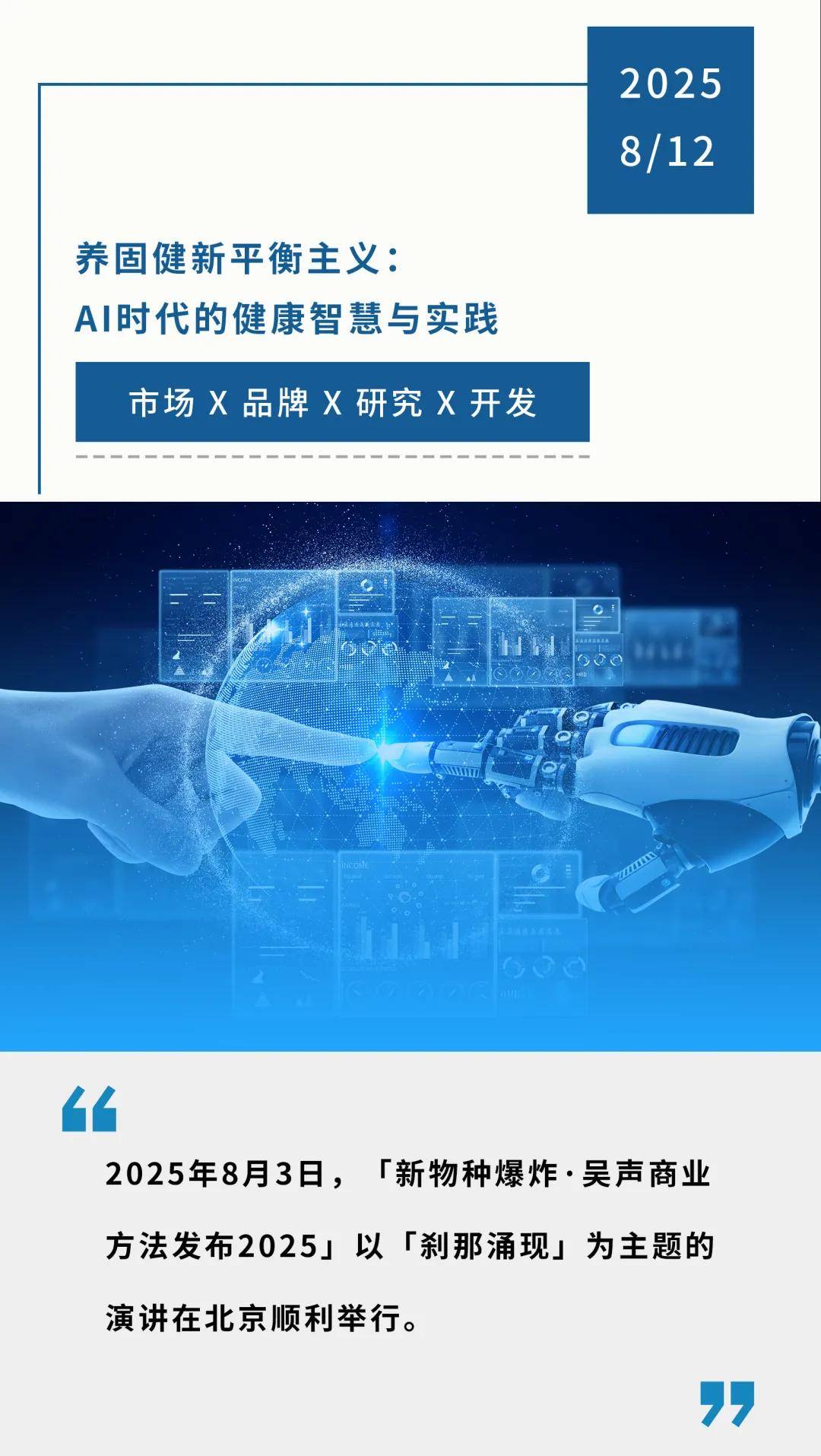 场景实验室创始人吴声指出,AI场景革命正推动商业进入哲学生活方式周期,而无限极养固健提出的“新平衡主义”,并非简单的品牌口号,而是“AI周期的时代命题与健康生活方法论”。
