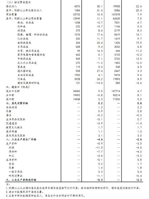 (1)规模以上工业增加值及其分类项目增长速度按可比价计算,为实际增长速度;其他指标除特殊说明外,均按现价计算,为名义增长速度。