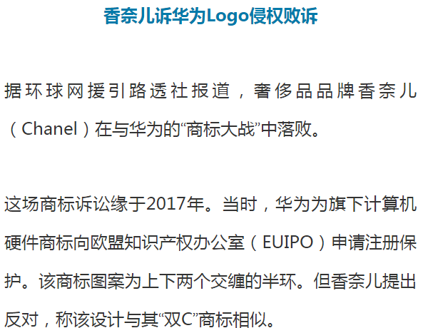 冲上热搜第一!香奈儿诉华为Logo侵权败诉!网友:字母C得起诉字母U了