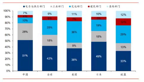 图1:碳排放源:电力与热力部门是碳排放最大领域,数据为2018全年数据