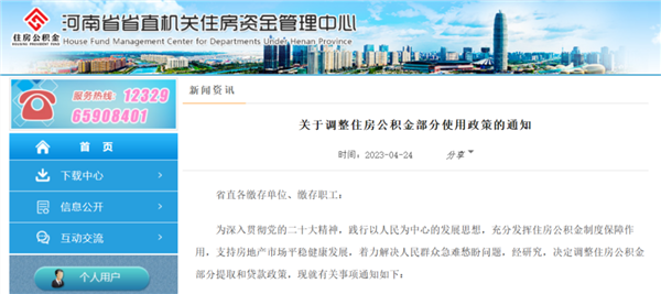 4月24日,河南省省直机关住房资金管理中心发布了《关于调整住房公积金部分使用政策的通知》。