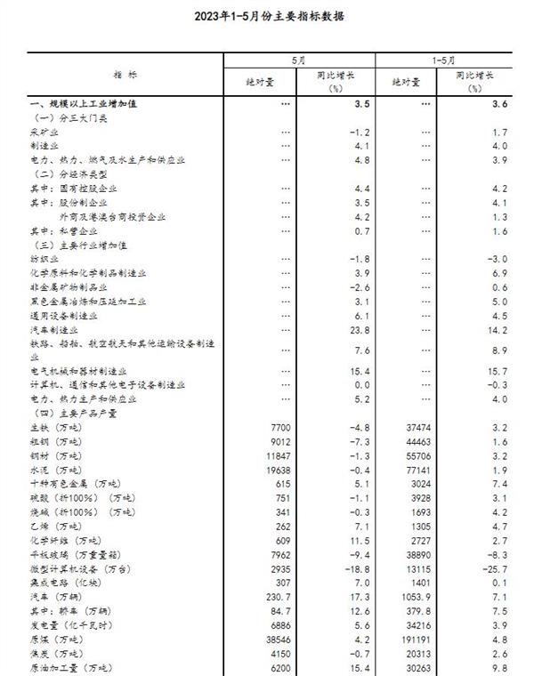 (原标题:统计局:5月规模以上工业增加值同比增长3.5% 国民经济继续恢复)