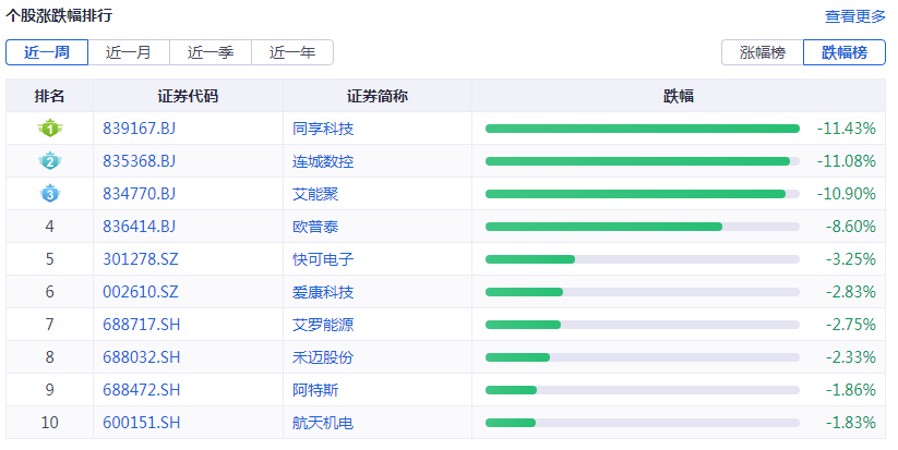 个股涨跌幅