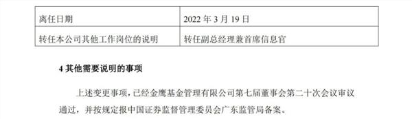 另外,同在3月19日,金鹰基金还发布了最新高管任命,凡湘平出任督察长,原督察长刘盛转任公司副总经理兼首席信息官。